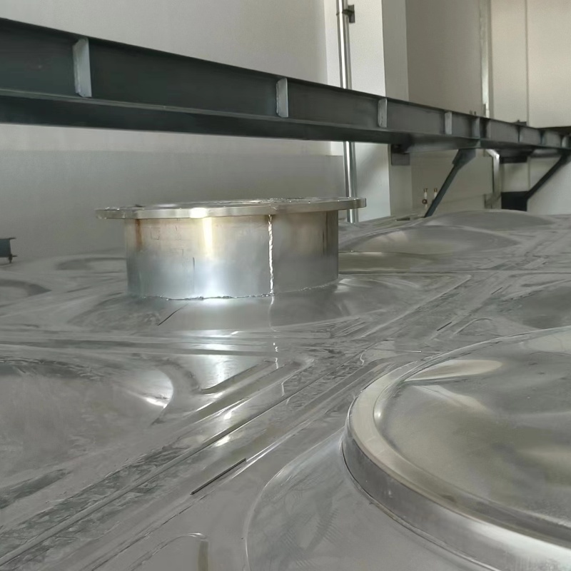 1.按照客戶提供的圖紙找出進水、出水、溢流、排污、氣孔的開口位置,畫上印作為標記,然后找準法蘭的角度與水箱板之間的凸面位置,放準為好,用鉛筆畫上印,在對準法蘭的螺栓口進行打孔.